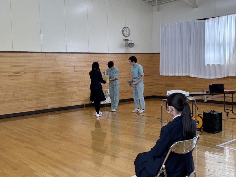 | 本校生徒から文教大学附属高等学校の生徒へ納品 | 文教大学附属高等学校の生徒からお礼の言葉 |