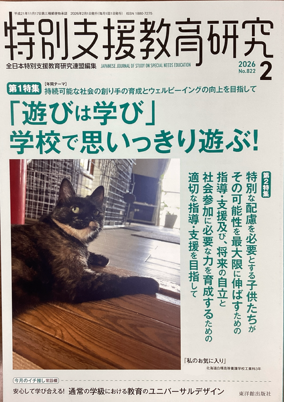 美術部員が部活の課題で撮った写真が、「特別支援教育研究2月号」の表紙に採用されました。「私のお気に入り」という題名です。夏期や冬期の長期休業の際、美術部では制作課題を設定しています。日頃は仲間と賑やかに制作し、休み中は自分と向き合って制作する。両方の時間を大切に活動しています。2月には今年度2回目の美術館とのオンラインアート教室を行う予定です。
