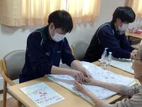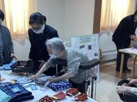 自分たちが製作した製品を丁寧に説明し、買物を楽しんでいただきました。昨年訪問した際にリクエストがあったボックスティッシュケースを2種類製作して販売することができ、喜んでいただくことができました。また、今年度は販売と並行してハンドマッサージをさせていただきました。利用者の方から「初めてハンドマッサージをしたけど、とても気持ちがいいね」というお言葉をいただきました。